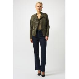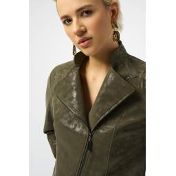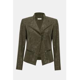 Foiled Faux Suede Fitted Moto Jacket 253915 Avocado.