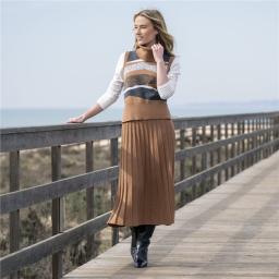 This sleeveless jumper is crafted from a soft cotton blend with polyamide for shape and durability. Featuring an abstract wave design, it adds a modern edge to layered looks. The ribbed trims provide a neat finish, while the versatile cut makes it easy to style over shirts or tops. A detachable roll neck insert offers extra warmth and styling options, making it a standout layering piece for any wardrobe.
