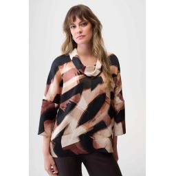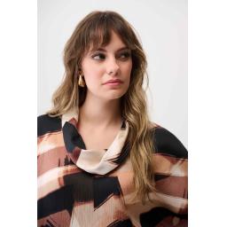 Satin Abstract Print Boxy Tunic with Cowl Collar 254216 Black/brown.