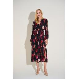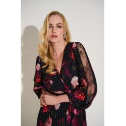 Signature | Pleated Chiffon Floral Fit & Flare Dress 253774 Black/Multi.