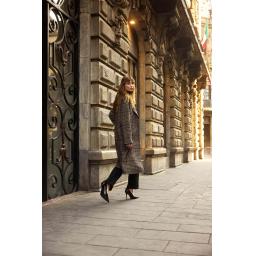 Smart and sophisticated, this wool blend coat combines warmth with timeless style. The double-faced plaid design is framed by a notched collar and V-shaped neckline for a classic yet modern look. Thoughtful details like hand-sewn snap closures and inseam pockets add a touch of craftsmanship to this elegant wardrobe staple.