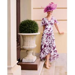 Step into elegance with the Rosa Clara / Couture Club 1GC3. This exquisite high-low evening dress, made of printed chiffon, exudes sophistication and charm. Designed with a flattering V-neckline, airy cape sleeves, and a refined closed back, it’s perfect for any special occasion. Let us make your occasion unforgettable with this stunning piece.