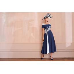 Discover timeless sophistication with John Charles Style 66625, the simply chic crepe A-line dress with chiffon insert, Bardot neckline, and floral appliqué details, perfect for any occasion. Embrace understated elegance in this simply chic crepe A-line dress, featuring a stunning chiffon insert on the skirt that adds movement and softness. The flattering Bardot neckline beautifully frames the shoulders, while delicately crafted floral appliqué details add a touch of romance. Ideal for the mother of the bride or groom, or a wedding guest,  this dress ensures you look and feel your best.